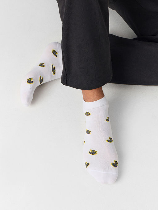 Цена за 5 пар! Носки мужские белые с рисунком в виде злых уток