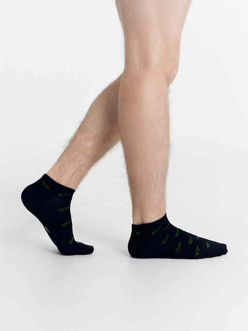 Цена за 5 пар! Носки мужские черные с рисунком в виде оригами из самолетиков