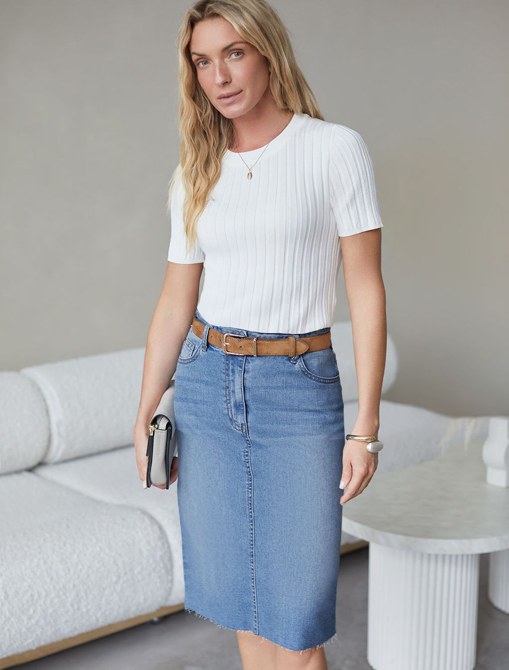 Джинсовая юбка с декоративной стиркой из эластичного облегченного денима