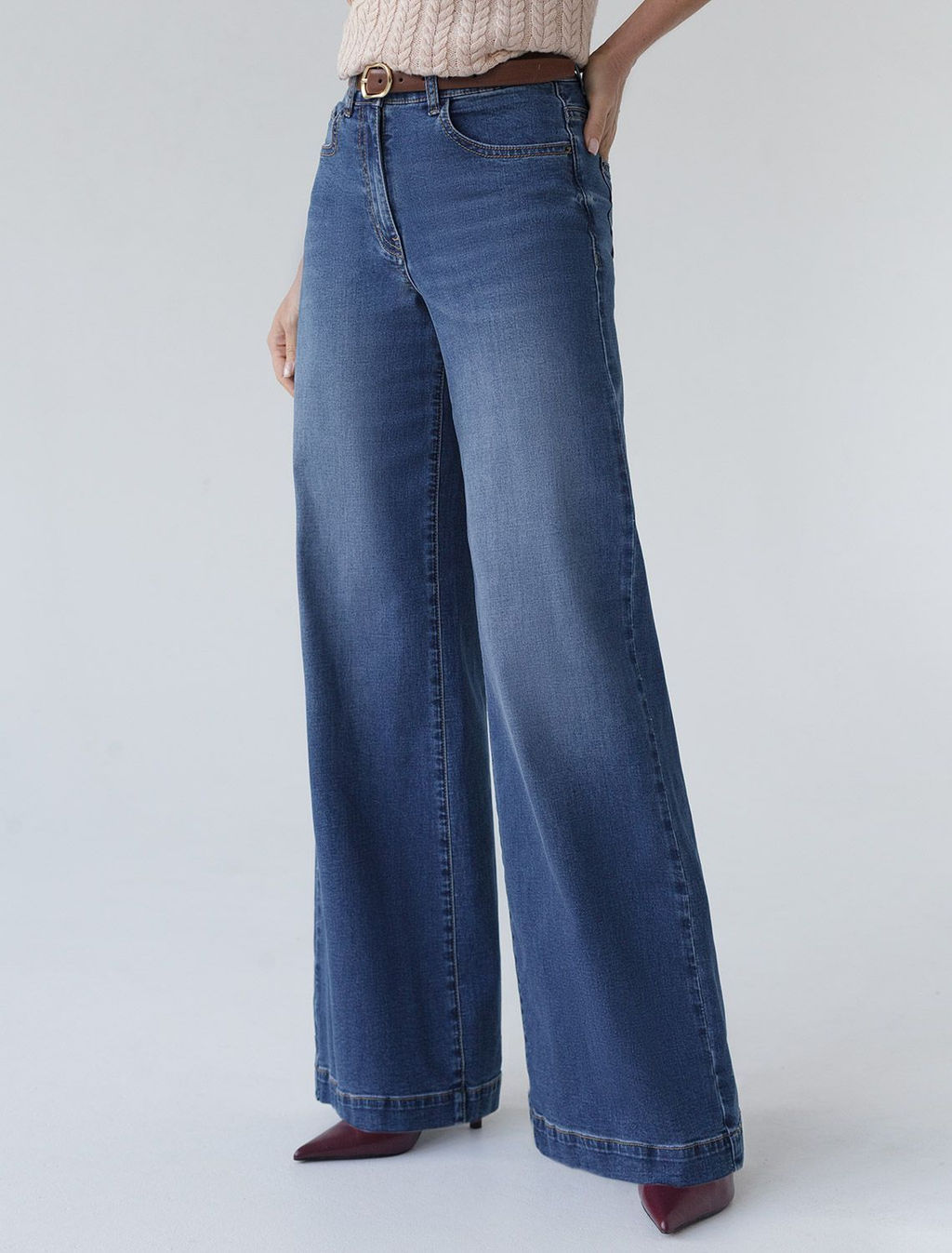 Джинсы трубы прямые с декоративной стиркой из эластичного денима
