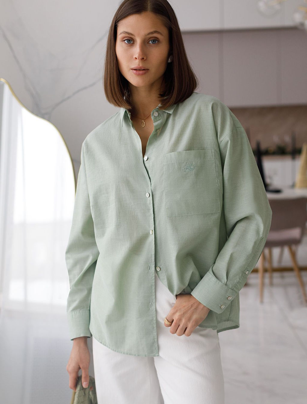Блузка свободная с карманом из хлопка