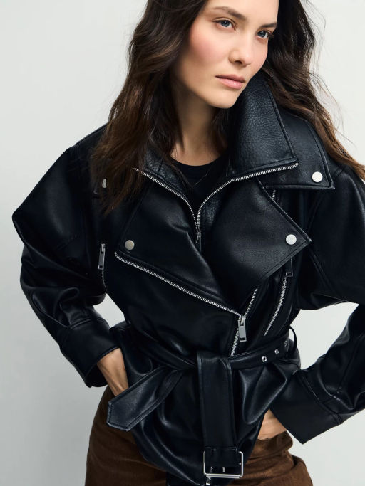Куртка-косуха с ремнем на поясе из искусственной кожи / Zarina