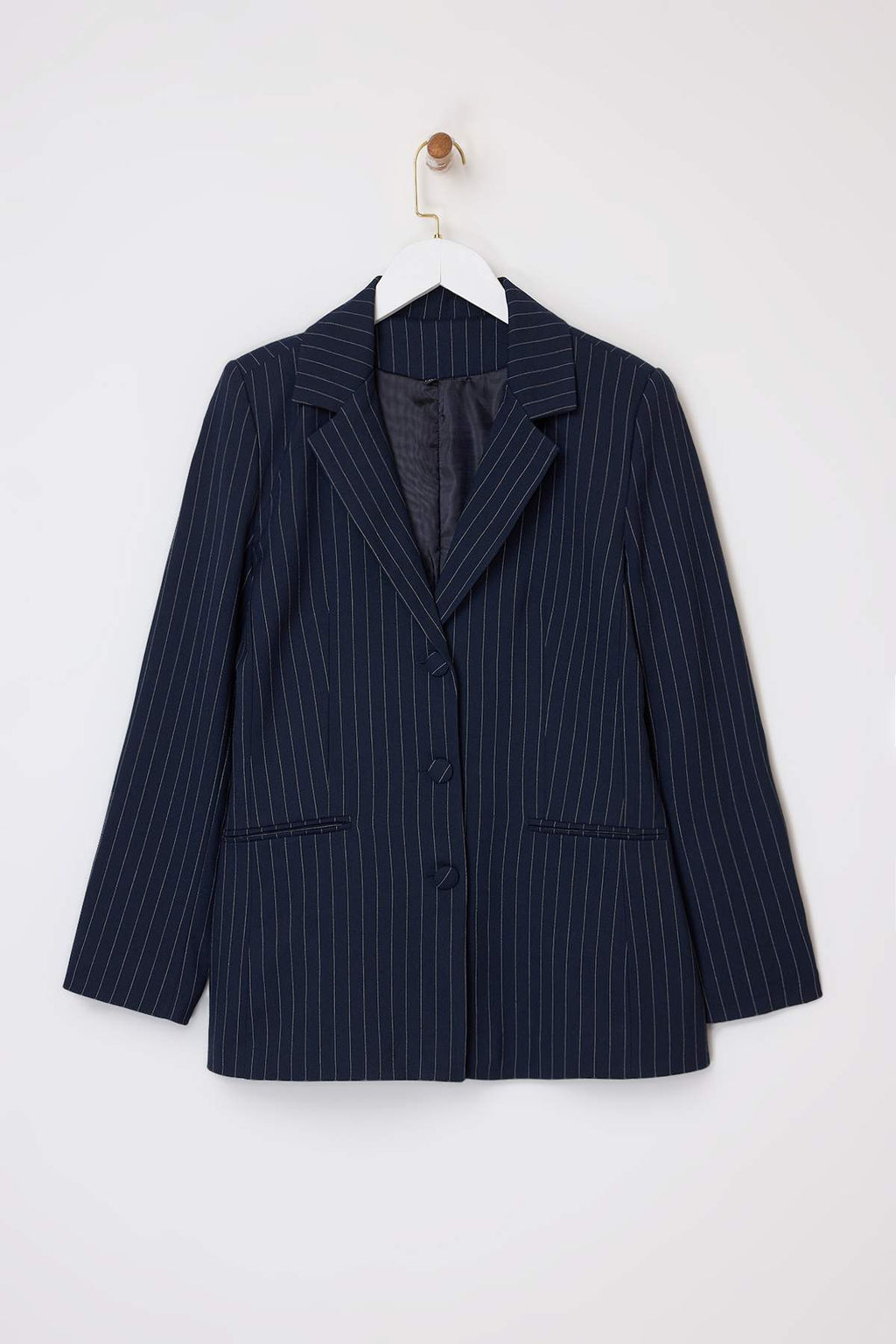 Lacivert Cizgili S?rt? Kemer Detayl? Dokuma Astarl? Vatkal? Blazer Ceket TWOSS26BC00002