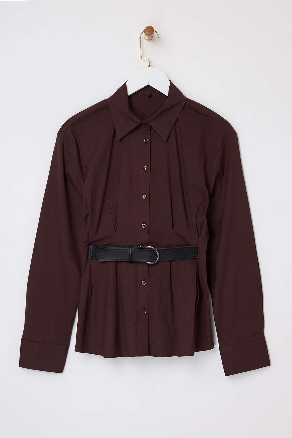 Kahverengi Suni Deri Kemer Detayl? Pileli Gomlek TWOSS26GO00011