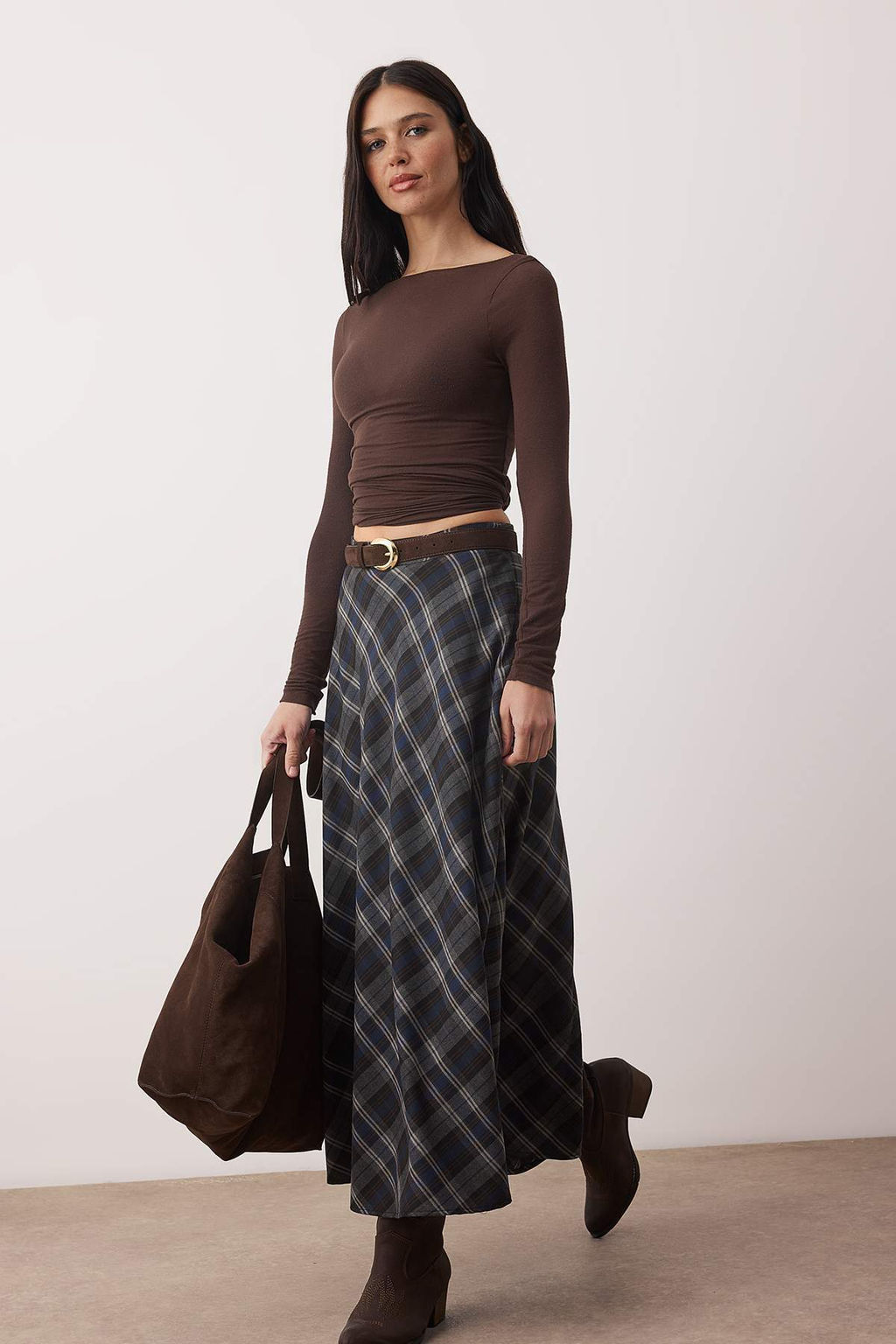 Lacivert Siyah Ekoseli Dokuma Uzun Maxi Etek TWOAW26ET00164