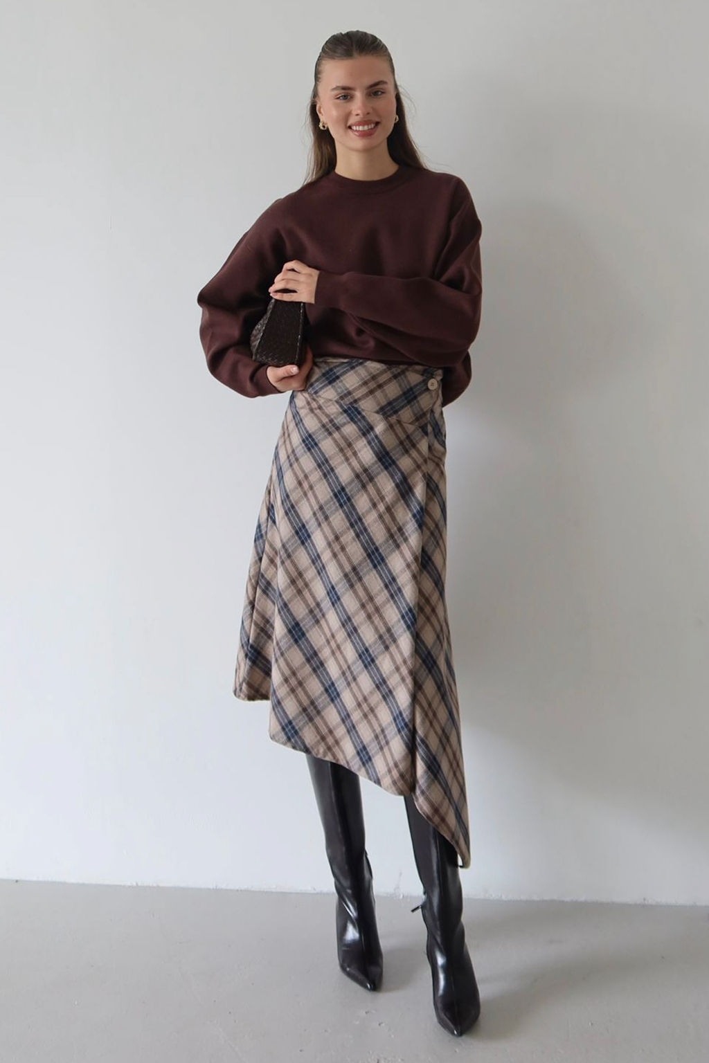 Bej-Cok Renkli Ekose Asimetrik Kesim Dugme Detayl? Etek TWOAW26ET00173