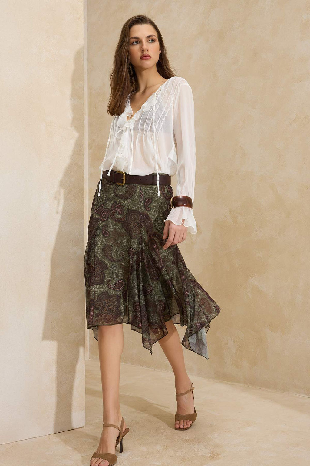 Cok Renkli Cicekli A-Kesim/Can Form Volanl?/F?rf?rl? Normal Bel Midi Tul Orme Etek TWOSS26ET00019