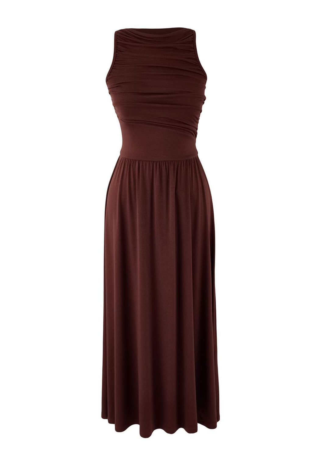 Kahverengi A-Kesim/Can Form Kay?k Yaka Buzgulu Uzun Yumusak Orme Elbise TWOSS26EL00021
