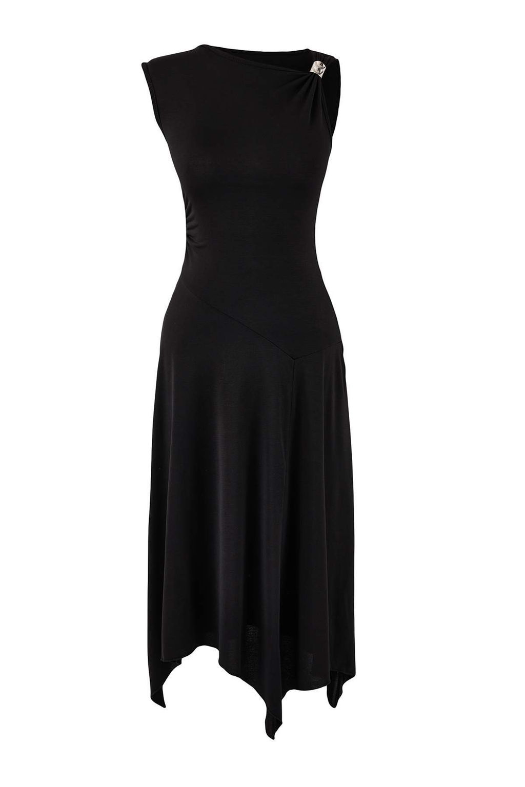 Siyah Belden Ac?lan Asimetrik Yaka Kolsuz Aksesuar Detayl? Midi Esnek Orme Elbise TWOSS26EL00044