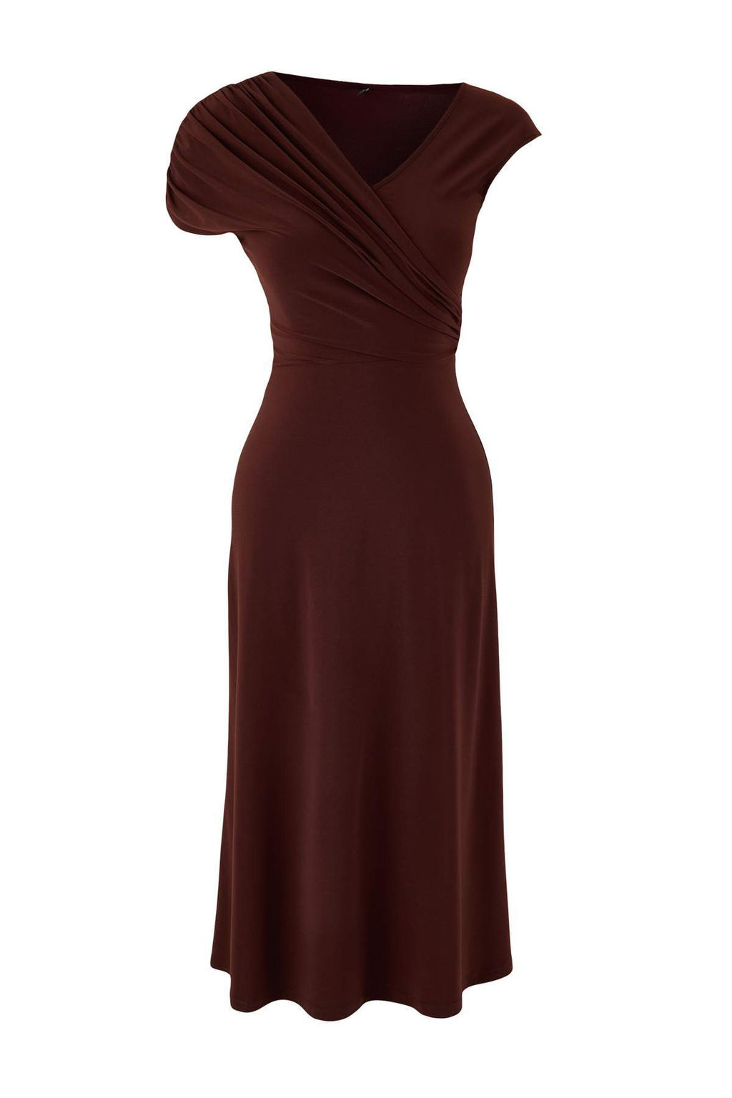 Kahverengi A-Kesim/Can Form Dusuk Kol K?sa Kollu Buzgulu Midi Esnek Orme Elbise TWOSS26EL00045