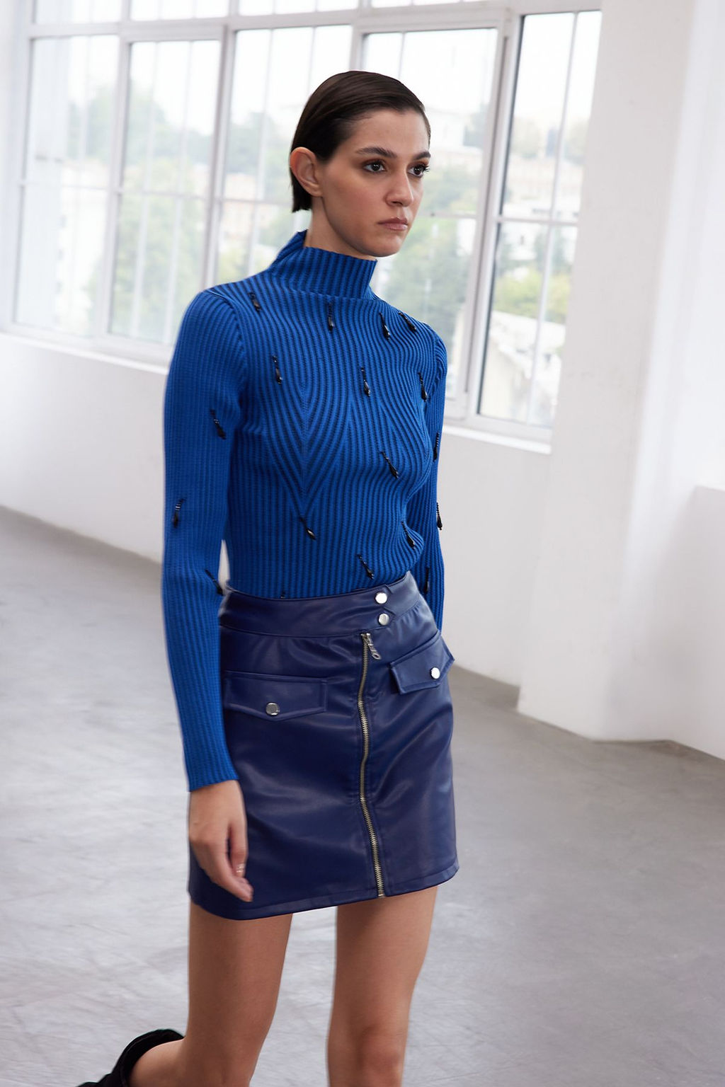 Limited Edition Indigo Tas Detayl? Dik Yaka Triko Kazak TWOAW25KZ00326