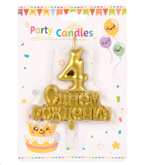 Свеча Цифра С Днем Рождения / KL-30 Четверка /уп 12/360/ 746704