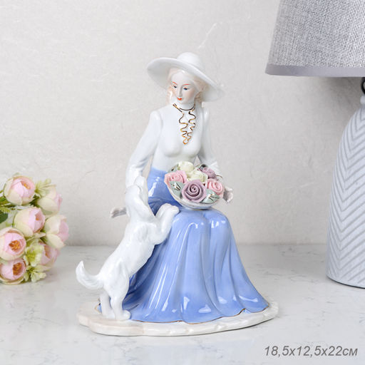 Статуэтка Дама с собакой 22 см / HP095 /уп 24/