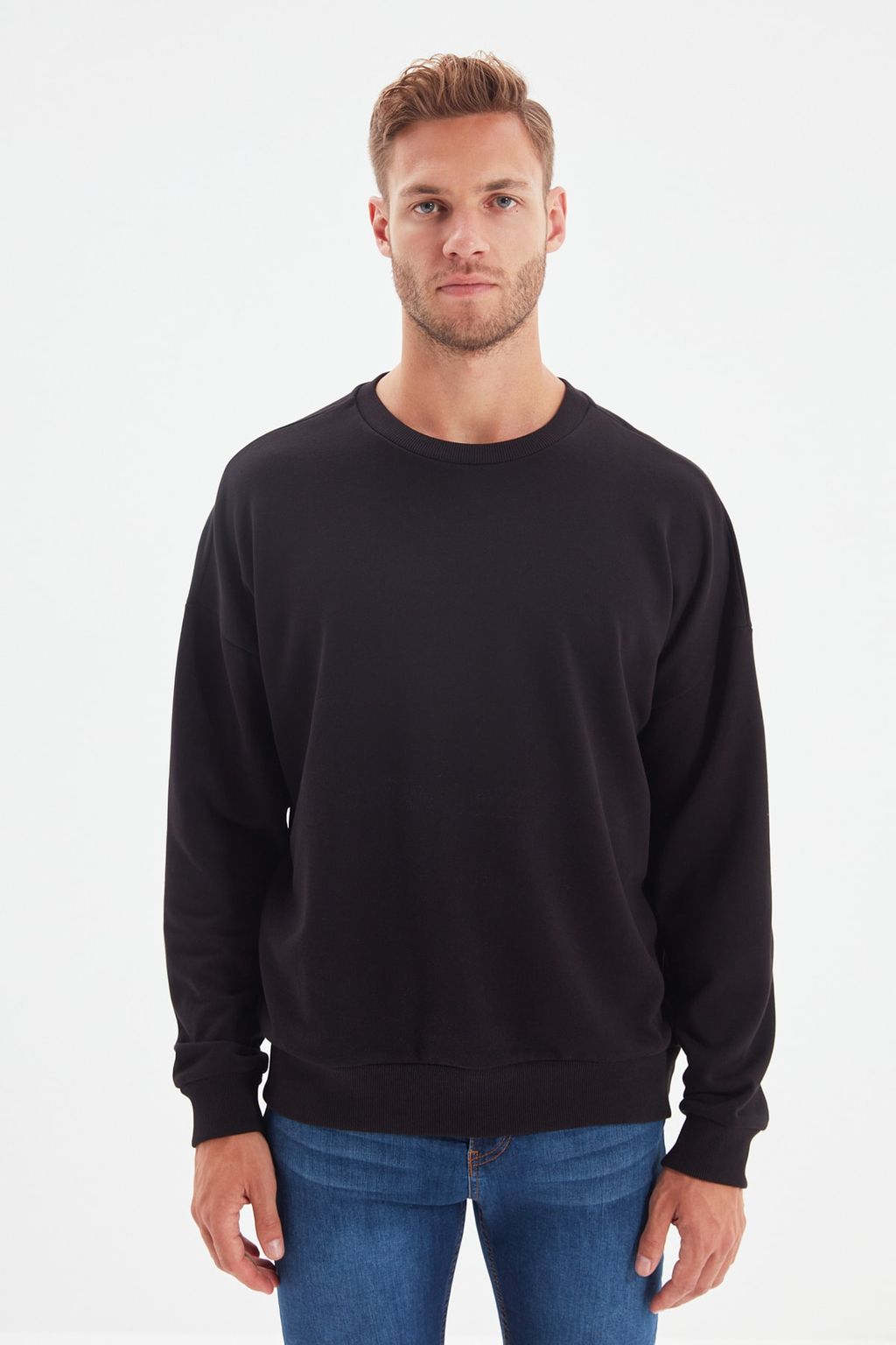 Siyah Oversize/Genis Kesim Sardonsuz Sweatshirt TMNAW22SW0612