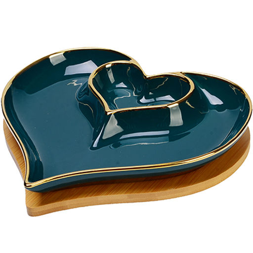 12090 Менажница Сердце 2 секции с подставкой 2пр фарфор/дерево LR (х24)