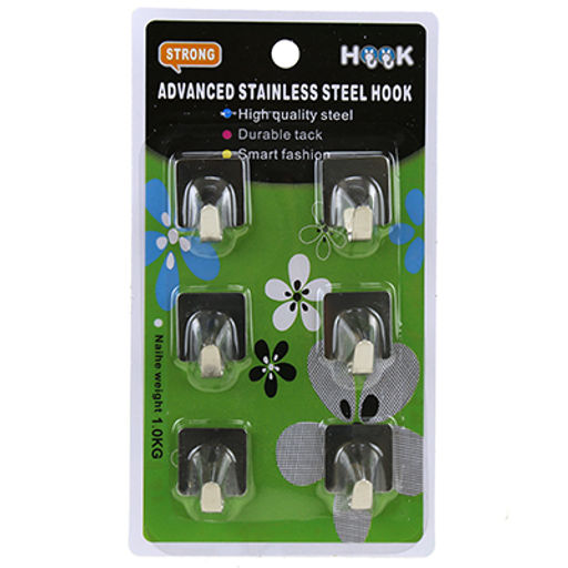 Крючок на липучке "Квадрат", 6 штук, 2х2,5х1,5см, нерж., в блистере (Китай)