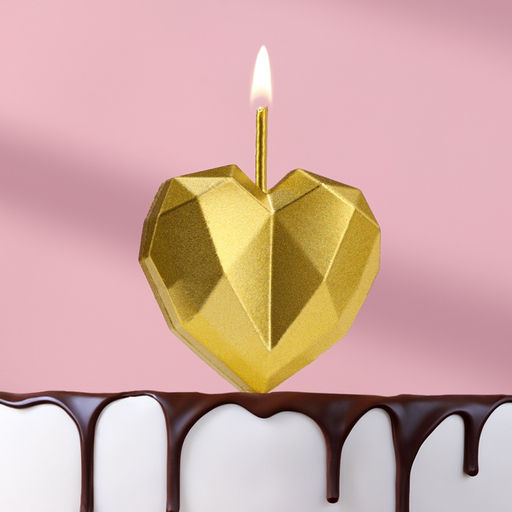 Цена за 5 шт. Свеча для торта Сердце, золотая