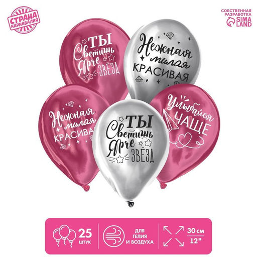 Воздушные шары латексные 12" Все твои мечты, 25 шт., хром