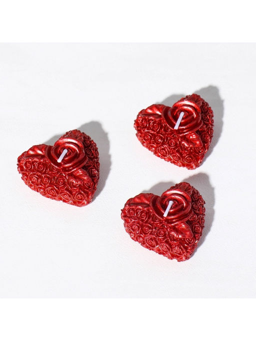 УЦЕНКА Набор свечей Сердце с розой, 3 шт., 5?2.5 см, красный