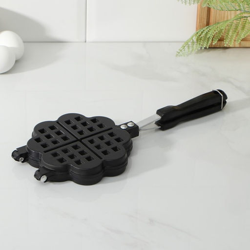 Сковорода вафельница Доляна Венские вафли, d=14 см, пластиковая ручка, чёрная
