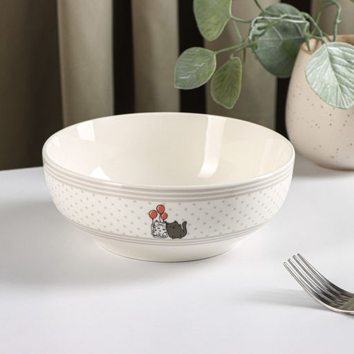 Салатник Доляна Уютные коты, 600 мл, d=15.5 см, белый