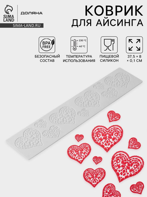 Коврик для айсинга Доляна Сердца, силикон, 37.5?8?0.1 см, белый