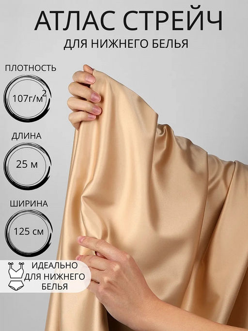 Ткань Атлас стрейч для нижнего белья арт.0180 107г/м? шир.125см цв.126(11) бежевый, уп.25м