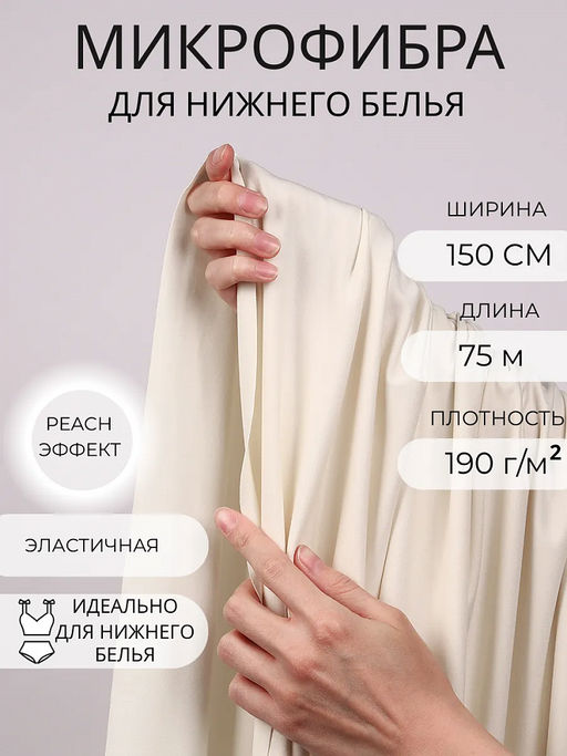 Микрофибра для нижнего белья Peach эффект KRUZHEVO арт.OLG005 пл.190 г/м? шир.150см цв.004 теплый белый (11-0701 TPX) рул.20-25кг (1кг ? 3,6м)