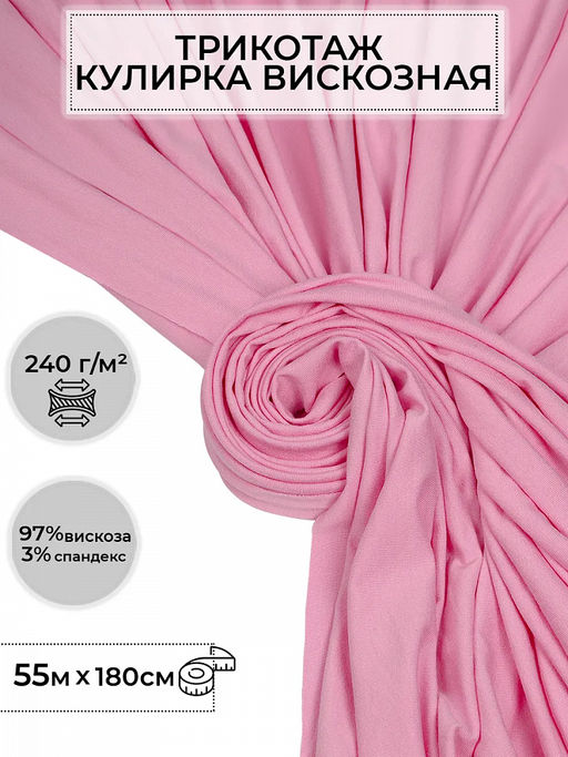 Ткань трикотаж вискоза 240 г/м? ш.180 см арт.TBY.023709 цв.S207 розовый рул.24-25кг (1кг-2,3м)