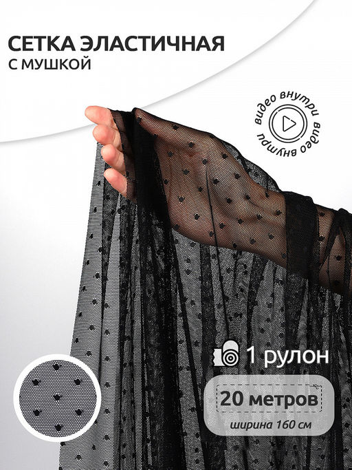 Сетка эластичная Мушка KRUZHEVO арт.TBY.00128 ш.160см цв.02 черный рул.20м