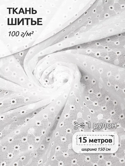 Ткань шитье 100 г/м? 100% хлопок шир.150 см арт.TBY.Emb.2 белый рул.15м