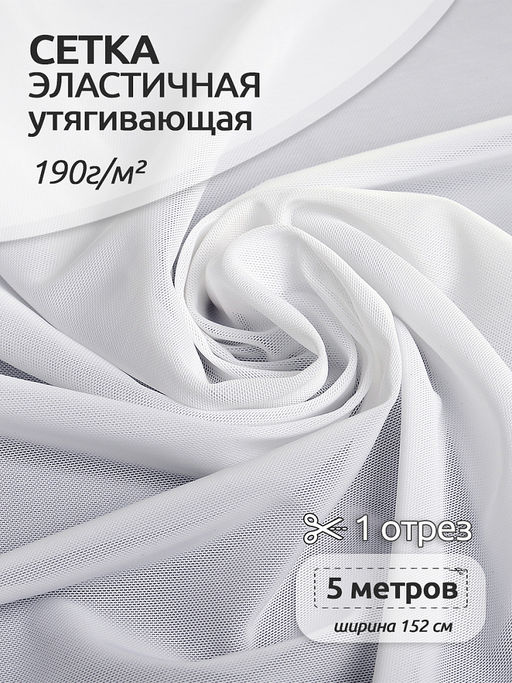 Сетка эластичная утягивающая KRUZHEVO арт.OLG008 190г/м? ш.152см цв.001 белый уп.5м
