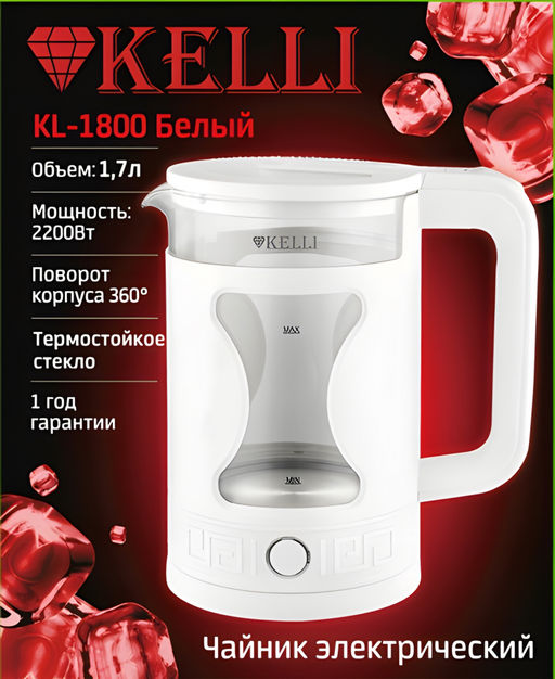 Чайник эл. 1,7 л стекл., "Kelli", арт. 1800-KL