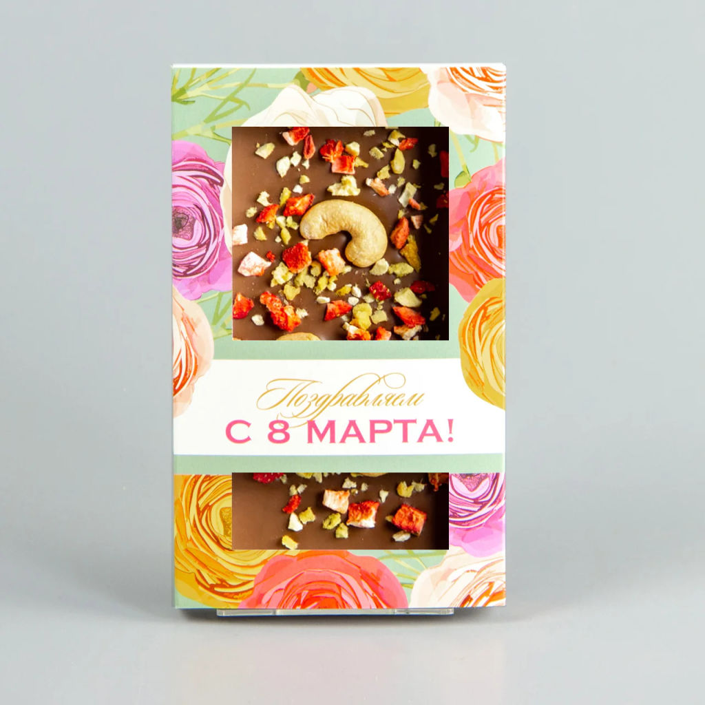 Молочный шоколад с манго, клубникой и жаренным кешью, коробочка с 8 марта #8