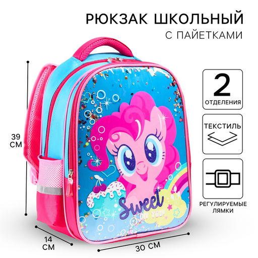 Рюкзак школьный для девочки, 39 см ? 30 см ? 14 см Пинки Пай, My little Pony