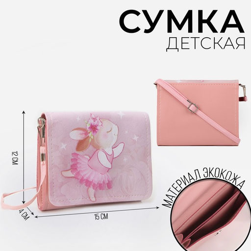 Сумка детская для девочки Зайка балерина, на клапане, розовая, 15?4?12 см