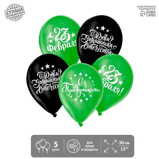Воздушные шары латексные 12" С Днём защитника Отечества! С 23 февраля, 5 шт.