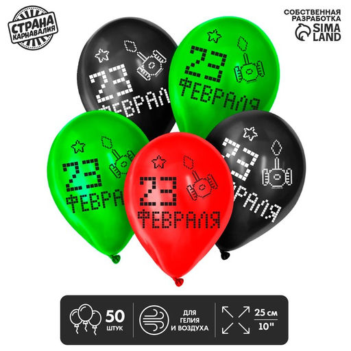 Воздушные шары латексные 12" 23 Февраля, 50 шт.