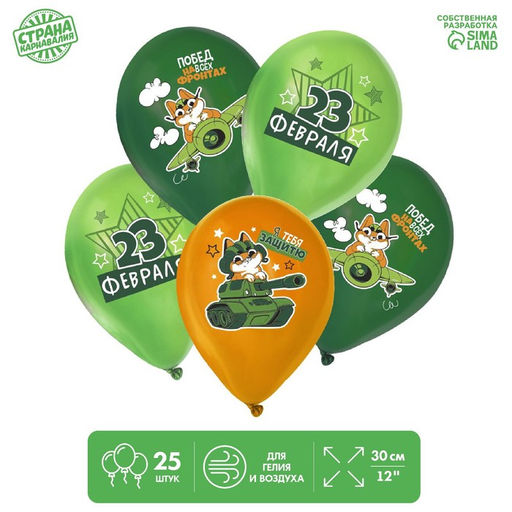 Воздушные шары латексные 12" С 23 февраля. Побед, 25 шт., МИКС