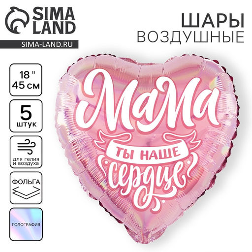 Воздушные шары фольгированные 18" Мама, сердце, 5 шт.