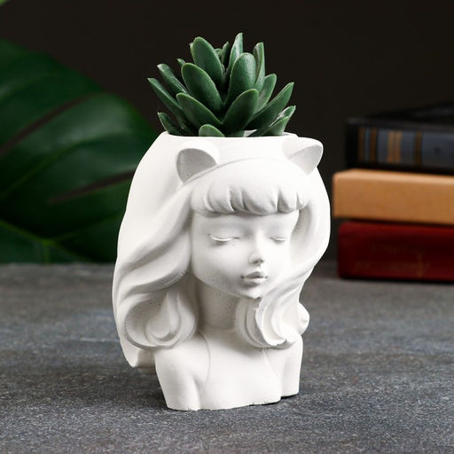 Декоративное кашпо для цветов Девушка с ушками, 11?9?7 см, гипс, белое
