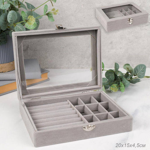 Шкатулка серая 20х15х4,5 см / XY2845-2 /уп 50/