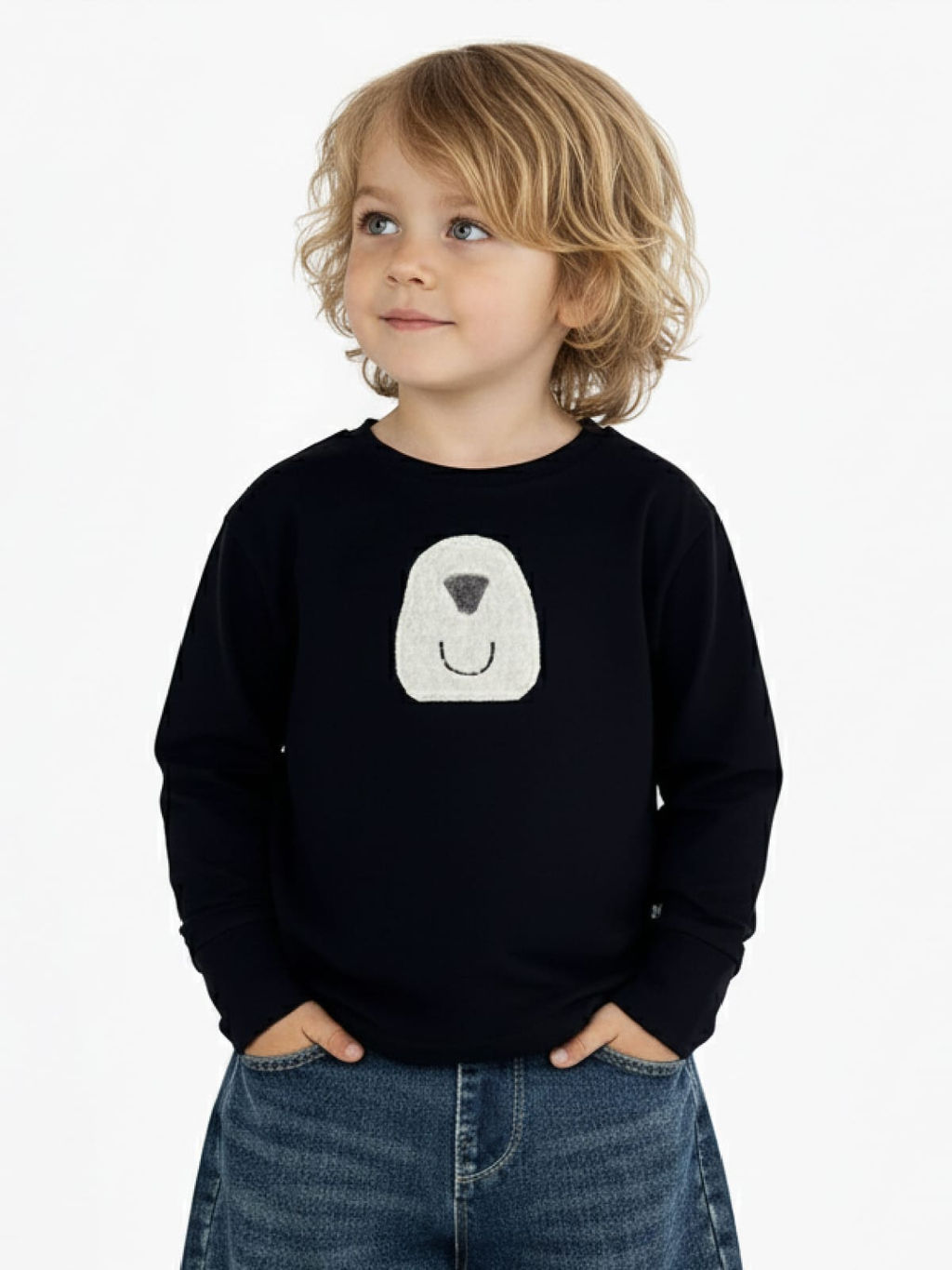 Лонгслив с аппликацией для мальчика 22-0233 черный