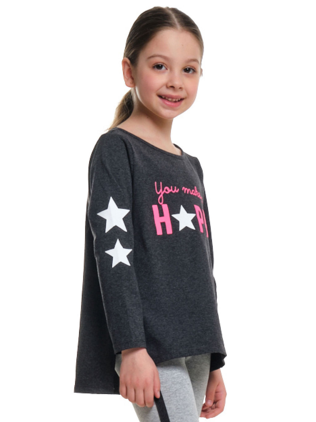 Лонгслив с принтом для девочки UD 3726 черный меланж