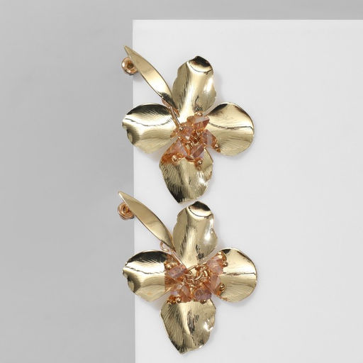 Серьги ассорти "Цветок" рельеф, цвет розовый в золоте