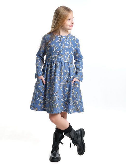 Платье для девочки вельветовое из набивного полотна UD 7844 синие мелкие цветы