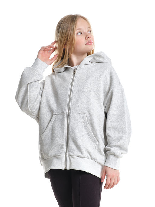Толстовка зипка оверсайз с капюшоном на молнии 22-8605 серый меланж