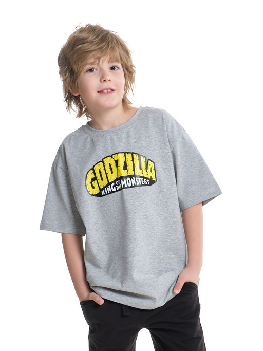 Футболка для мальчика с принтом 22-9015 серый меланж