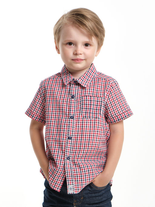 Рубашка в клетку на мальчика модная детский сад UD 7941 красный/синий