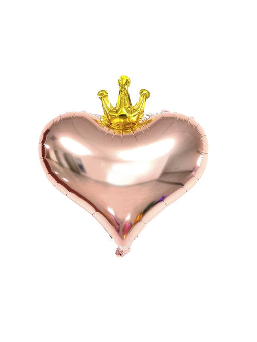 Воздушный шар фольгированный 18" Сердце с короной, набор 5 шт., розовое - золото